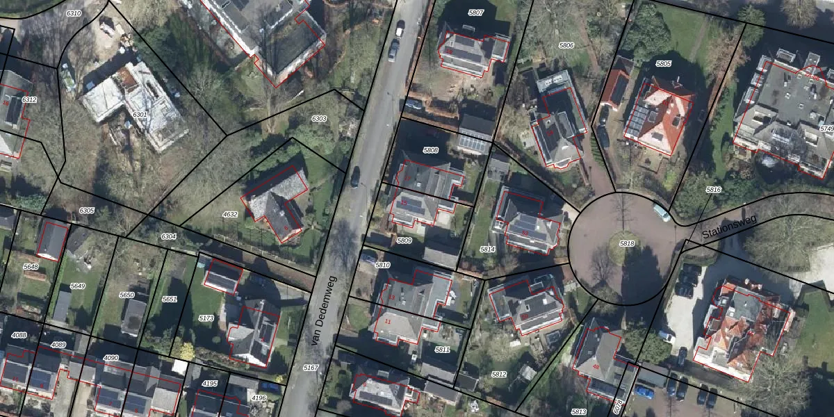 Gebruik de zoekbalk of klik op een perceel voor informatie over de adressen binnen dit perceel.