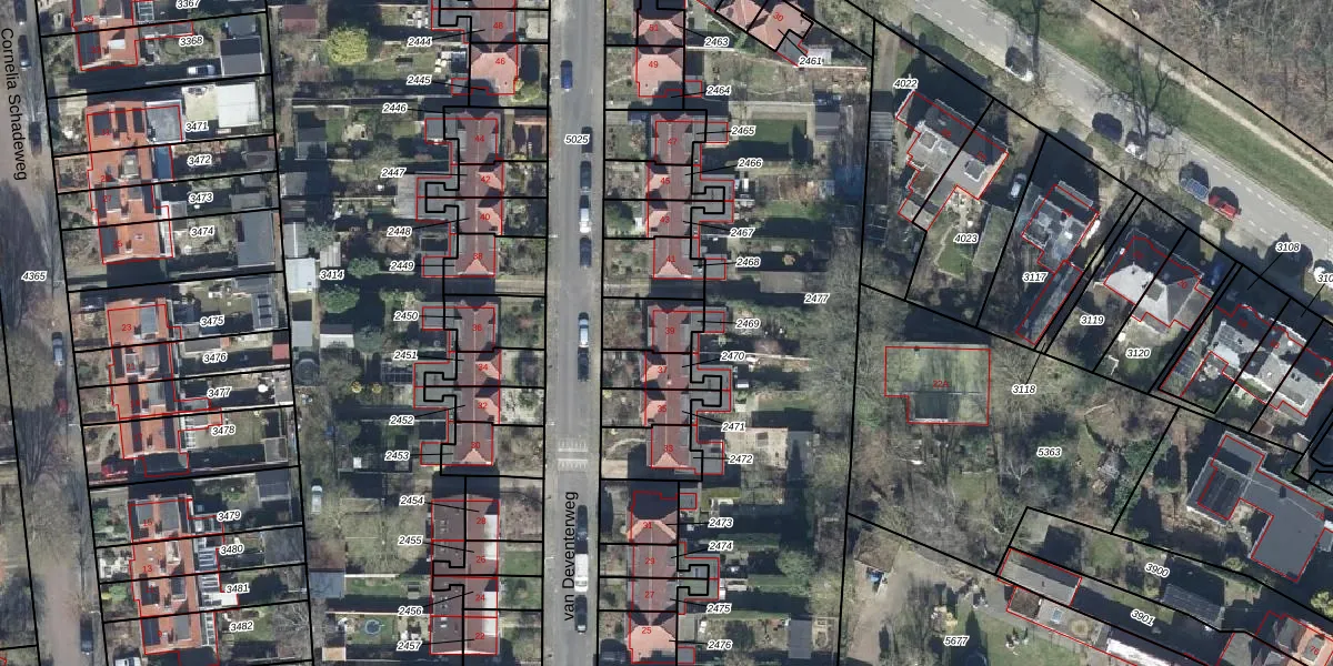 van Deventerweg 39 is gelegen op kadastraal perceel OTB00C2469. Deze kadastrale aanduiding is uniek en wordt gebruikt door het Kadaster om eigendomsrechten en andere zakelijke rechten vast te leggen. Het perceel maakt onderdeel uit van de kadastrale gemeente Oosterbeek.