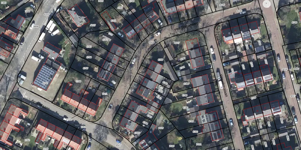 Gebruik de zoekbalk of klik op een perceel voor informatie over de adressen binnen dit perceel.