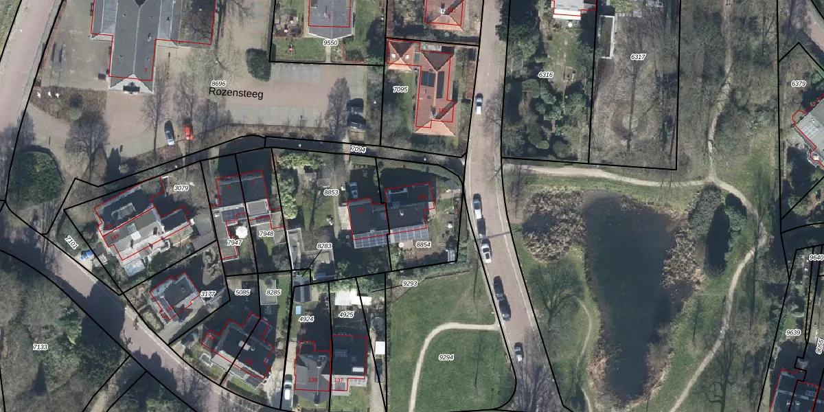 Gebruik de zoekbalk of klik op een perceel voor informatie over de adressen binnen dit perceel.