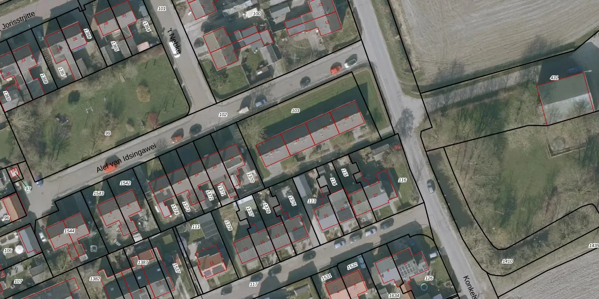 Het perceel waarop Alef van Idsingawei 22 staat heeft een oppervlakte van 1042 m². Dit is een zeer groot perceel. De perceeloppervlakte wordt geregistreerd door het Kadaster. Gedetailleerde informatie over de maten van dit perceel kunt u vinden in het rapport Kadastrale kaart met maatvoering van Alef van Idsingawei 22.