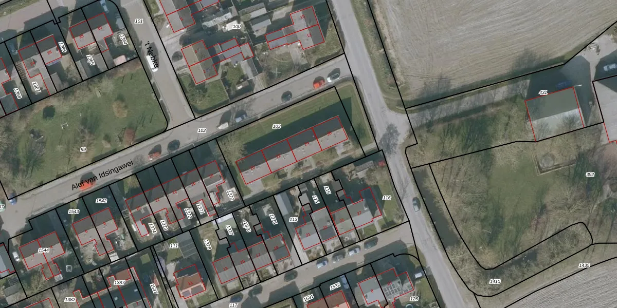 Het perceel waarop Alef van Idsingawei 24 staat heeft een oppervlakte van 1042 m². Dit is een zeer groot perceel. De perceeloppervlakte wordt geregistreerd door het Kadaster. Gedetailleerde informatie over de maten van dit perceel kunt u vinden in het rapport Kadastrale kaart met maatvoering van Alef van Idsingawei 24.