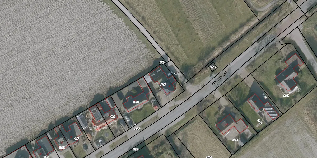 Het perceel waarop Haerdawei 46 staat heeft een oppervlakte van 389 m². Dit is een groot perceel. De perceeloppervlakte wordt geregistreerd door het Kadaster. Gedetailleerde informatie over de maten van dit perceel kunt u vinden in het rapport Kadastrale kaart met maatvoering van Haerdawei 46.