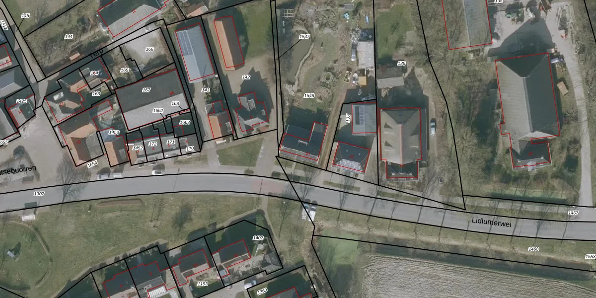 Het perceel waarop Lidlumerwei 10 staat heeft een oppervlakte van 1635 m². Dit is een zeer groot perceel. De perceeloppervlakte wordt geregistreerd door het Kadaster. Gedetailleerde informatie over de maten van dit perceel kunt u vinden in het rapport Kadastrale kaart met maatvoering van Lidlumerwei 10.