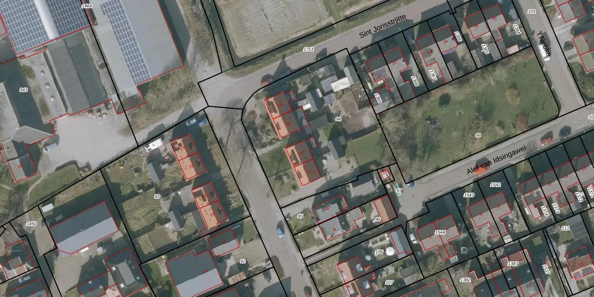 Het perceel waarop Sint Jorisstrjitte 14 staat heeft een oppervlakte van 1685 m². Dit is een zeer groot perceel. De perceeloppervlakte wordt geregistreerd door het Kadaster. Gedetailleerde informatie over de maten van dit perceel kunt u vinden in het rapport Kadastrale kaart met maatvoering van Sint Jorisstrjitte 14.