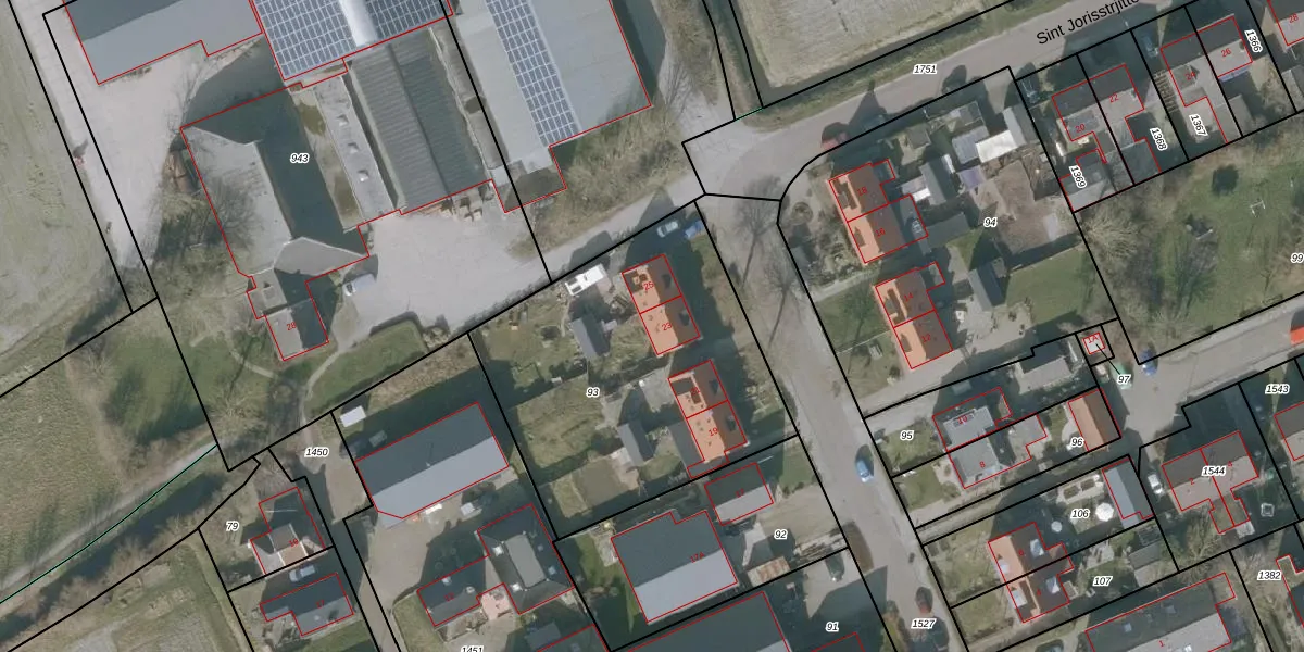 Het perceel waarop Sint Jorisstrjitte 23 staat heeft een oppervlakte van 1475 m². Dit is een zeer groot perceel. De perceeloppervlakte wordt geregistreerd door het Kadaster. Gedetailleerde informatie over de maten van dit perceel kunt u vinden in het rapport Kadastrale kaart met maatvoering van Sint Jorisstrjitte 23.