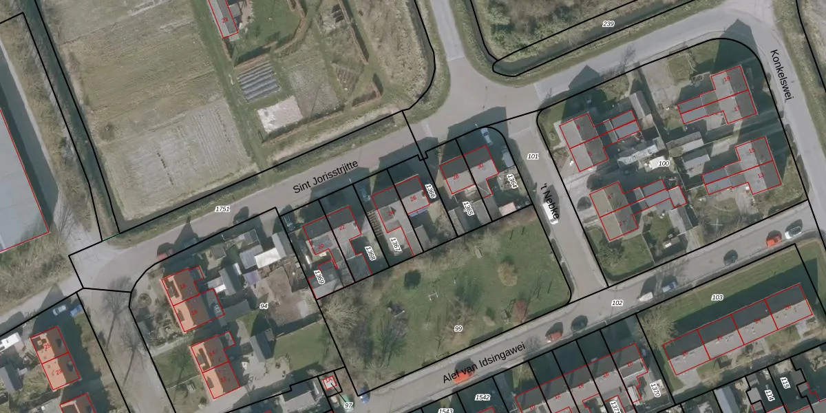 Het perceel waarop Sint Jorisstrjitte 26 staat heeft een oppervlakte van 199 m². Dit is een middelgroot perceel. De perceeloppervlakte wordt geregistreerd door het Kadaster. Gedetailleerde informatie over de maten van dit perceel kunt u vinden in het rapport Kadastrale kaart met maatvoering van Sint Jorisstrjitte 26.