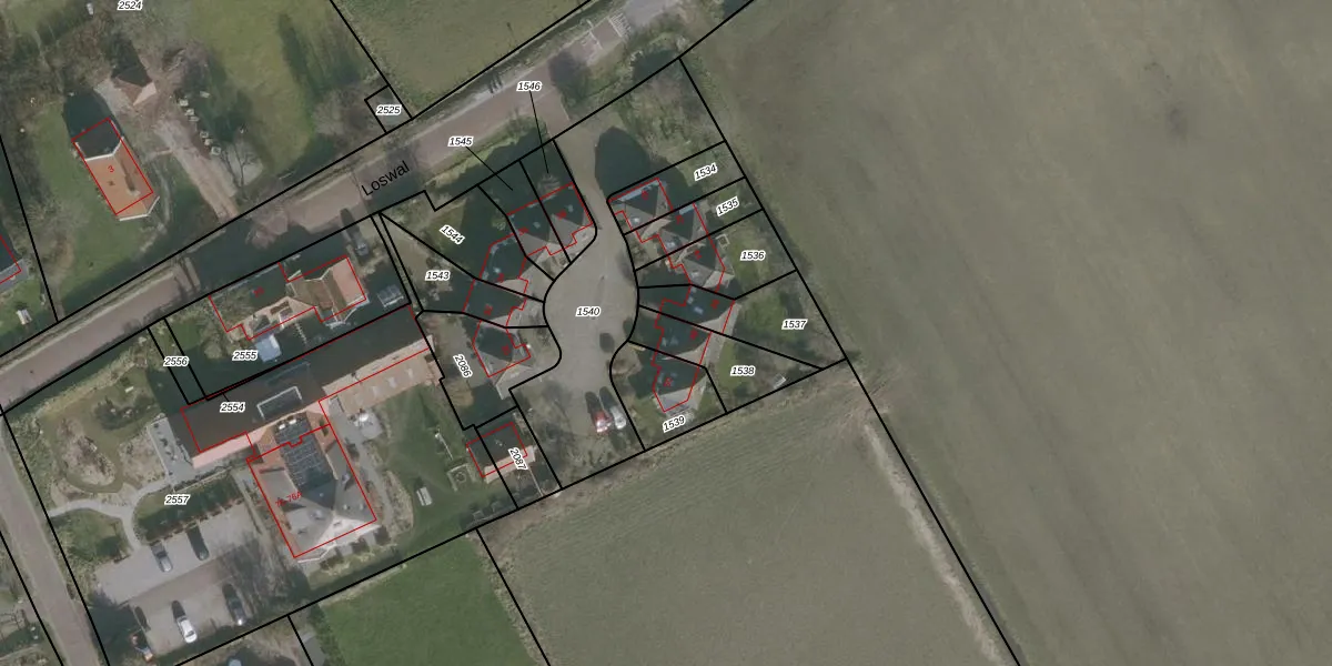 Het perceel waarop Loswal 48 staat heeft een oppervlakte van 175 m². Dit is een middelgroot perceel. De perceeloppervlakte wordt geregistreerd door het Kadaster. Gedetailleerde informatie over de maten van dit perceel kunt u vinden in het rapport Kadastrale kaart met maatvoering van Loswal 48.