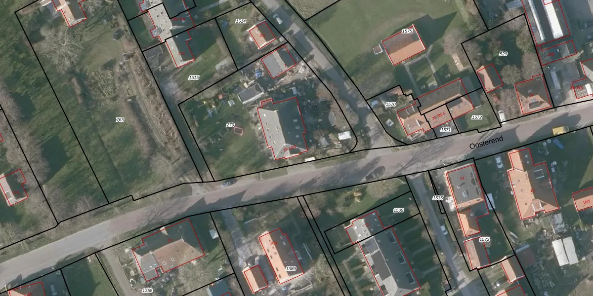 Het perceel waarop Oosterend 19 staat heeft een oppervlakte van 1740 m². Dit is een zeer groot perceel. De perceeloppervlakte wordt geregistreerd door het Kadaster. Gedetailleerde informatie over de maten van dit perceel kunt u vinden in het rapport Kadastrale kaart met maatvoering van Oosterend 19.