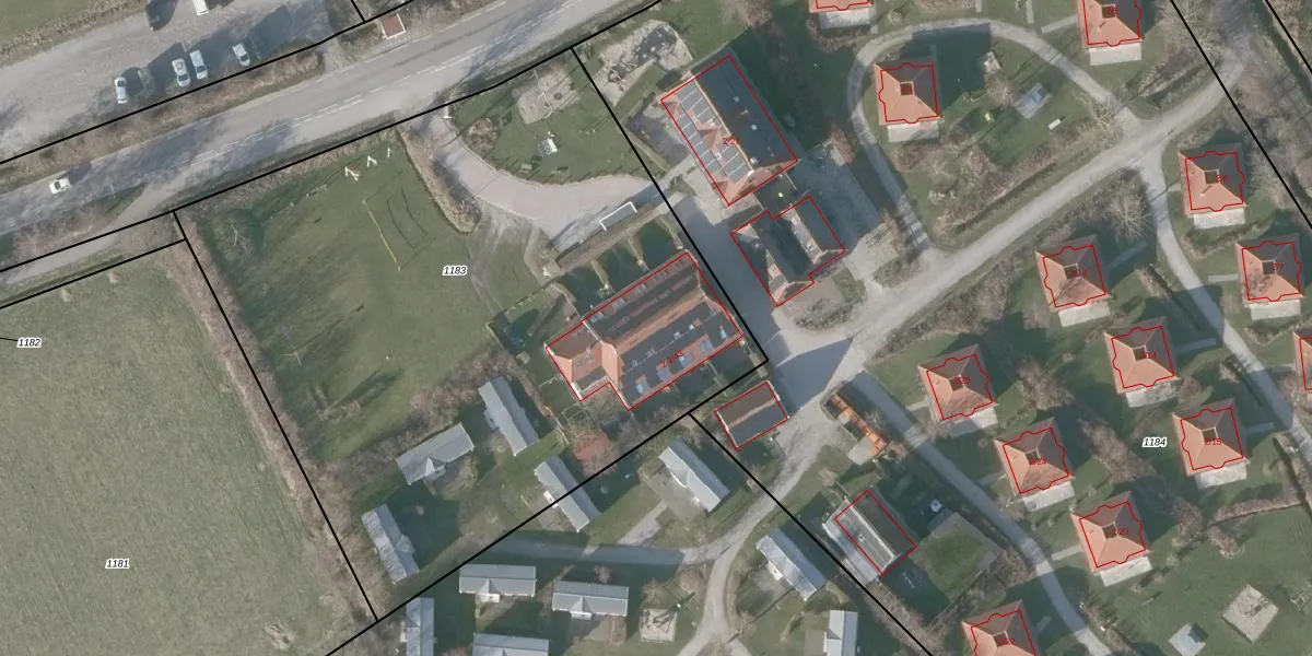 Het adres is gelegen op perceel 1183 in de sectie K en de kadastrale gemeente Terschelling. De kadastrale aanduiding is aldus TSL00-K-1183. Het perceel is kleiner dan gemiddeld in Terschelling. Het perceel is 4250 m² groot, terwijl het gemiddelde ligt op 11,4 ha. De grootste perceeloppervlakte in de kadastrale gemeente is 95,16 km². De kleinste oppervlakte bedraagt 0 m². Op het perceel zijn 20 adressen aanwezig. De huidige grenzen van het perceel zijn digitaal in de Basisregistratie Kadaster (BRK) geregistreerd op 08-09-2008.