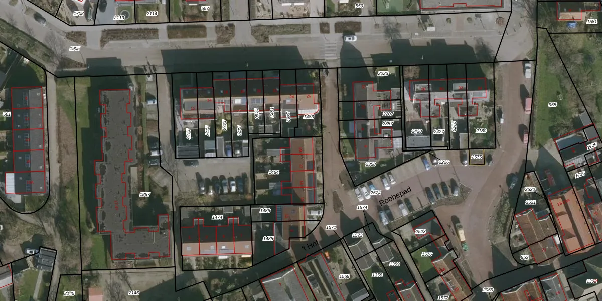 Het perceel waarop Robbepad 19 staat heeft een oppervlakte van 505 m². Dit is een groot perceel. De perceeloppervlakte wordt geregistreerd door het Kadaster. Gedetailleerde informatie over de maten van dit perceel kunt u vinden in het rapport Kadastrale kaart met maatvoering van Robbepad 19.