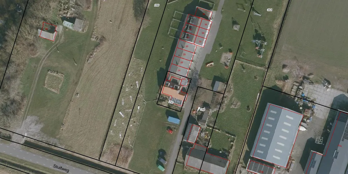 Het perceel waarop Stuifweg 22 staat heeft een oppervlakte van 285 m². Dit is een middelgroot perceel. De perceeloppervlakte wordt geregistreerd door het Kadaster. Gedetailleerde informatie over de maten van dit perceel kunt u vinden in het rapport Kadastrale kaart met maatvoering van Stuifweg 22.