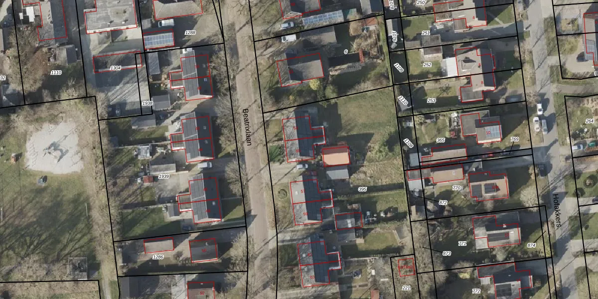 Het perceel waarop Beatrixlaan 55 staat heeft een oppervlakte van 3014 m². Dit is een zeer groot perceel. De perceeloppervlakte wordt geregistreerd door het Kadaster. Gedetailleerde informatie over de maten van dit perceel kunt u vinden in het rapport Kadastrale kaart met maatvoering van Beatrixlaan 55.