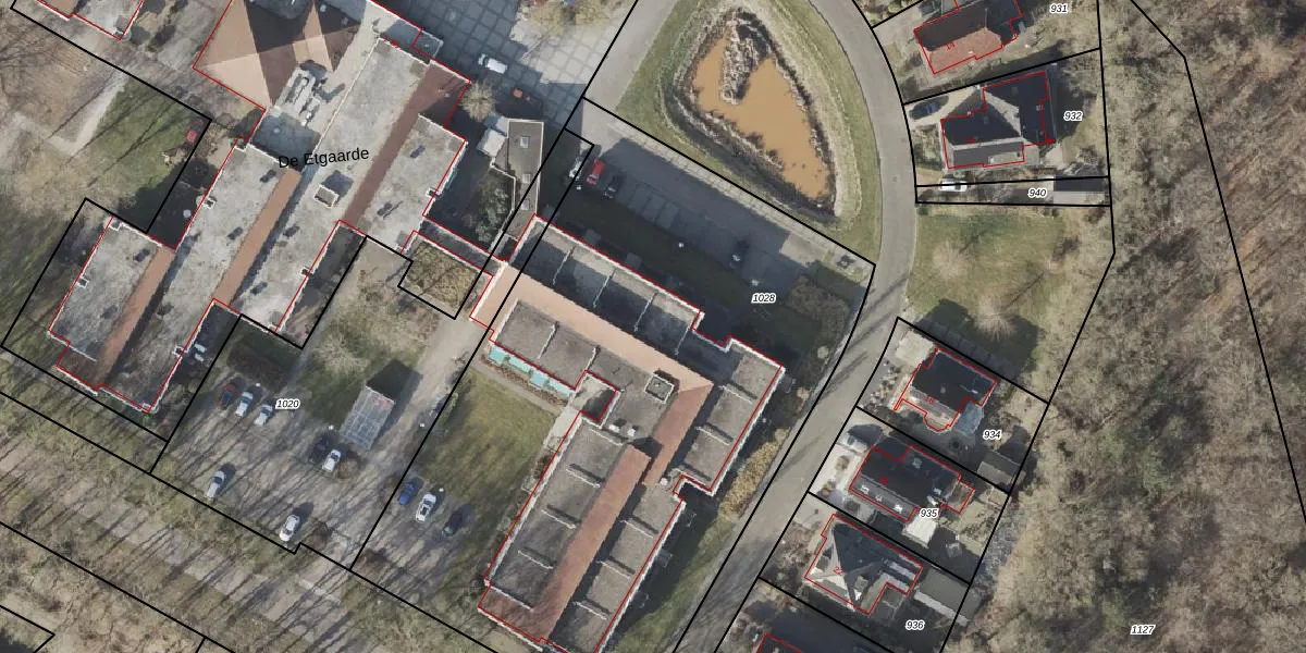Het perceel waarop De Etgaarde 1-C-107 staat heeft een oppervlakte van 3950 m². Dit is een zeer groot perceel. De perceeloppervlakte wordt geregistreerd door het Kadaster. Gedetailleerde informatie over de maten van dit perceel kunt u vinden in het rapport Kadastrale kaart met maatvoering van De Etgaarde 1-C-107.