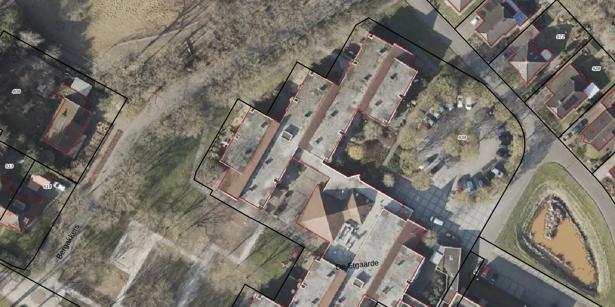 Het perceel waarop De Etgaarde 43 staat heeft een oppervlakte van 7405 m². Dit is een zeer groot perceel. De perceeloppervlakte wordt geregistreerd door het Kadaster. Gedetailleerde informatie over de maten van dit perceel kunt u vinden in het rapport Kadastrale kaart met maatvoering van De Etgaarde 43.