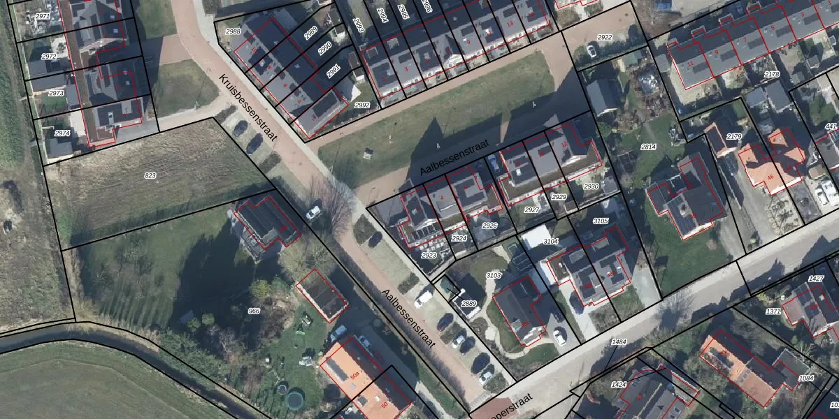 Aalbessenstraat 2 is gelegen op kadastraal perceel VBG02L2923. Deze kadastrale aanduiding is uniek en wordt gebruikt door het Kadaster om eigendomsrechten en andere zakelijke rechten vast te leggen. Het perceel maakt onderdeel uit van de kadastrale gemeente Valburg.