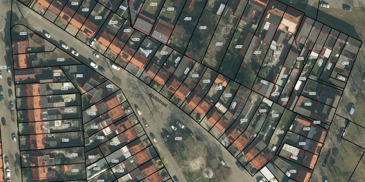 Gebruik de zoekbalk of klik op een perceel voor informatie over de adressen binnen dit perceel.