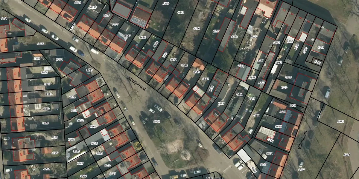 Gebruik de zoekbalk of klik op een perceel voor informatie over de adressen binnen dit perceel.