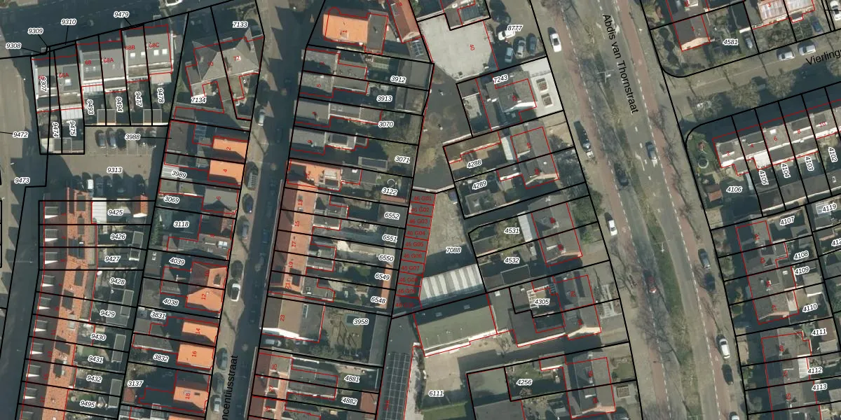 Het perceel waarop Abdis van Thornstraat 46-G02 staat heeft een oppervlakte van 557 m². Dit is een groot perceel. De perceeloppervlakte wordt geregistreerd door het Kadaster. Gedetailleerde informatie over de maten van dit perceel kunt u vinden in het rapport Kadastrale kaart met maatvoering van Abdis van Thornstraat 46-G02.