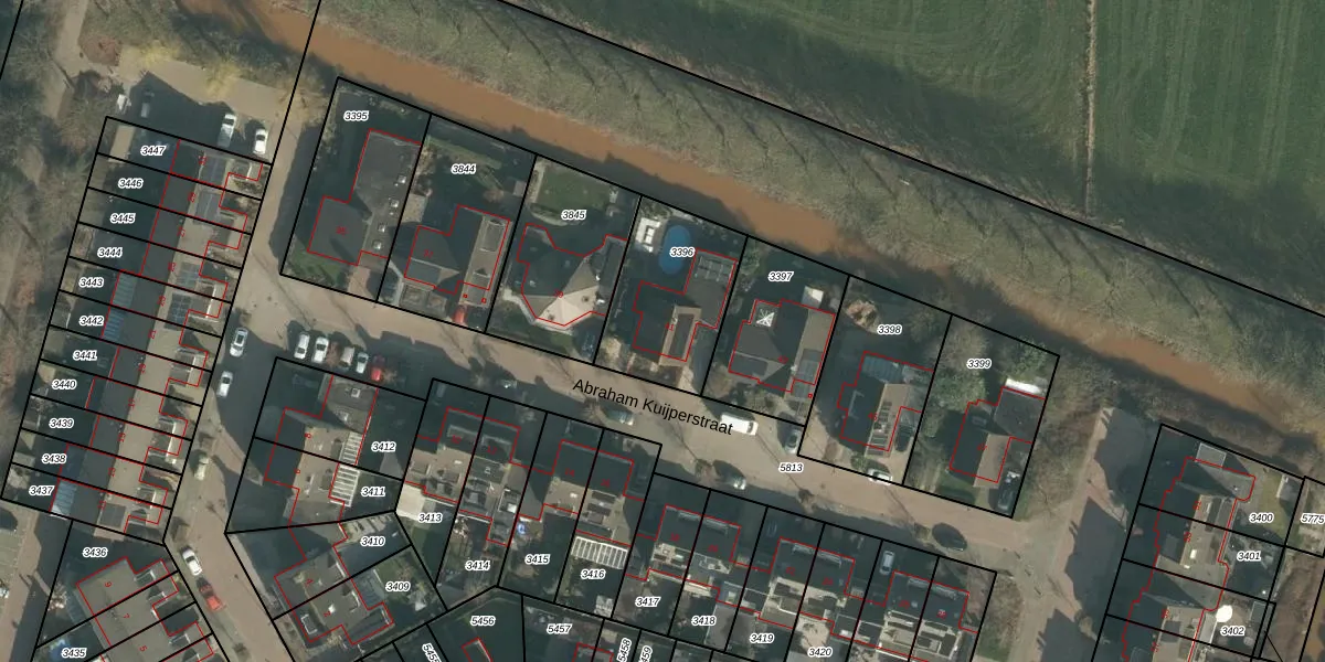 Het perceel waarop Abraham Kuijperstraat 41 staat heeft een oppervlakte van 443 m². Dit is een groot perceel. De perceeloppervlakte wordt geregistreerd door het Kadaster. Gedetailleerde informatie over de maten van dit perceel kunt u vinden in het rapport Kadastrale kaart met maatvoering van Abraham Kuijperstraat 41.
