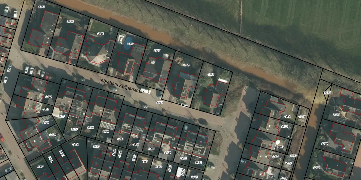 Het perceel waarop Abraham Kuijperstraat 45 staat heeft een oppervlakte van 455 m². Dit is een groot perceel. De perceeloppervlakte wordt geregistreerd door het Kadaster. Gedetailleerde informatie over de maten van dit perceel kunt u vinden in het rapport Kadastrale kaart met maatvoering van Abraham Kuijperstraat 45.