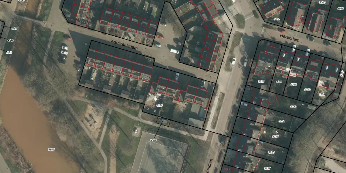 Het perceel waarop Admiraalsdam 18 staat heeft een oppervlakte van 2063 m². Dit is een zeer groot perceel. De perceeloppervlakte wordt geregistreerd door het Kadaster. Gedetailleerde informatie over de maten van dit perceel kunt u vinden in het rapport Kadastrale kaart met maatvoering van Admiraalsdam 18.