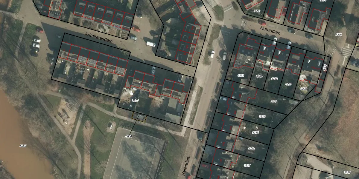 Het perceel waarop Admiraalsdam 22 staat heeft een oppervlakte van 2063 m². Dit is een zeer groot perceel. De perceeloppervlakte wordt geregistreerd door het Kadaster. Gedetailleerde informatie over de maten van dit perceel kunt u vinden in het rapport Kadastrale kaart met maatvoering van Admiraalsdam 22.