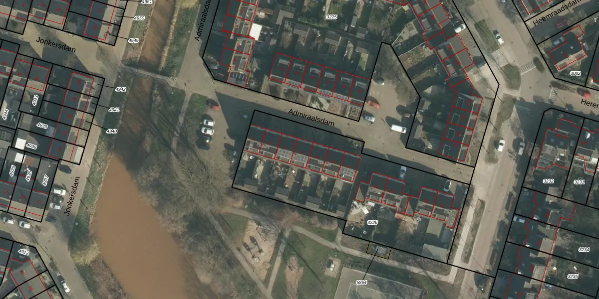 Het perceel waarop Admiraalsdam 8 staat heeft een oppervlakte van 2063 m². Dit is een zeer groot perceel. De perceeloppervlakte wordt geregistreerd door het Kadaster. Gedetailleerde informatie over de maten van dit perceel kunt u vinden in het rapport Kadastrale kaart met maatvoering van Admiraalsdam 8.