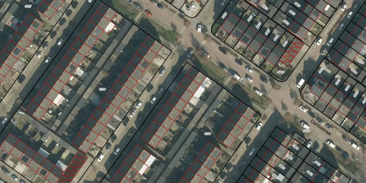 Het perceel waarop Akeleistraat 45 staat heeft een oppervlakte van 5140 m². Dit is een zeer groot perceel. De perceeloppervlakte wordt geregistreerd door het Kadaster. Gedetailleerde informatie over de maten van dit perceel kunt u vinden in het rapport Kadastrale kaart met maatvoering van Akeleistraat 45.