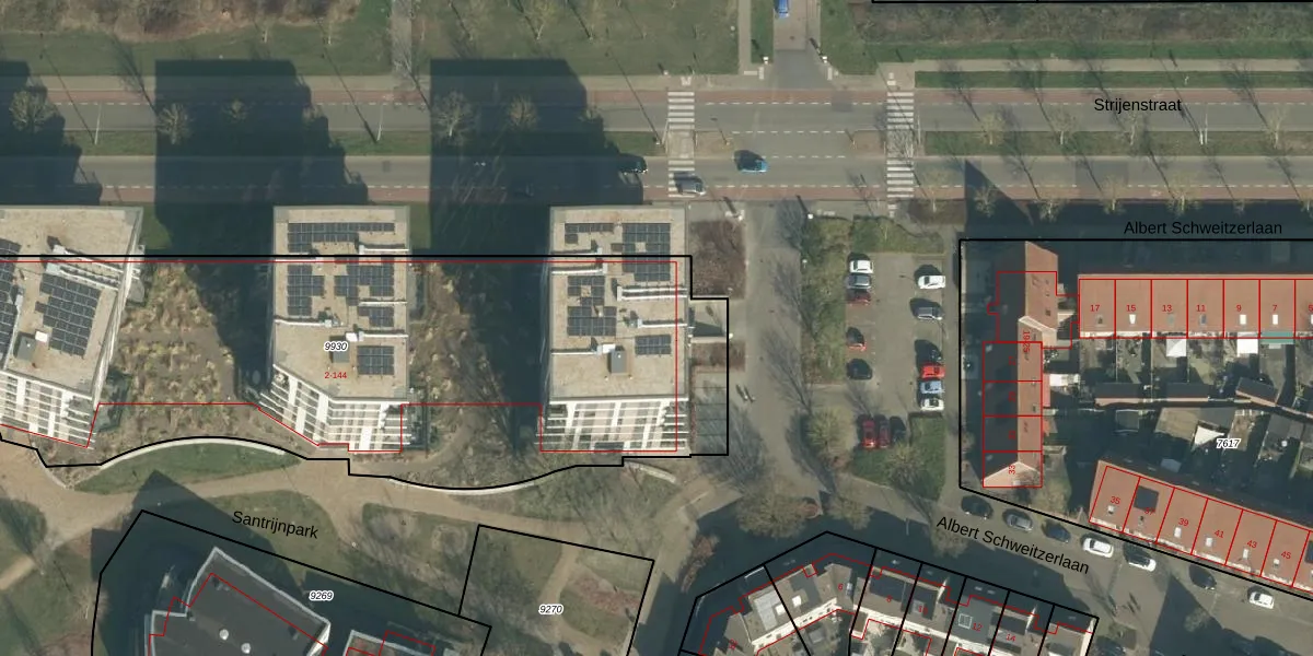 Het perceel waarop Albert Schweitzerlaan 2 staat heeft een oppervlakte van 3625 m². Dit is een zeer groot perceel. De perceeloppervlakte wordt geregistreerd door het Kadaster. Gedetailleerde informatie over de maten van dit perceel kunt u vinden in het rapport Kadastrale kaart met maatvoering van Albert Schweitzerlaan 2.