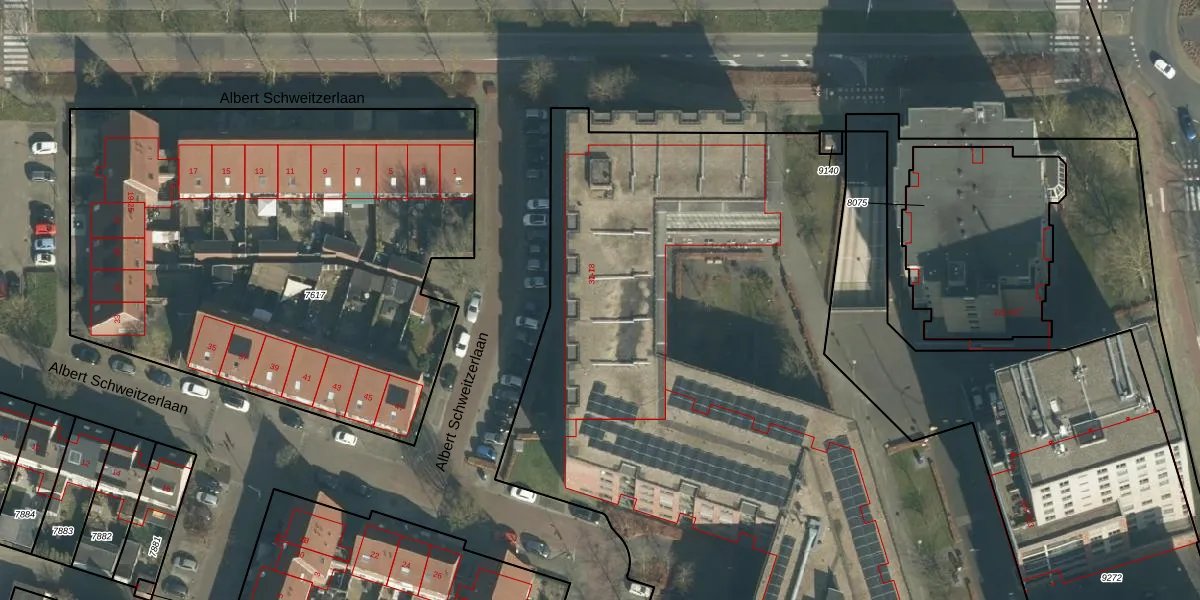 Het perceel waarop Albert Schweitzerlaan 42 staat heeft een oppervlakte van 1,4 ha. Dit is een zeer groot perceel. De perceeloppervlakte wordt geregistreerd door het Kadaster. Gedetailleerde informatie over de maten van dit perceel kunt u vinden in het rapport Kadastrale kaart met maatvoering van Albert Schweitzerlaan 42.
