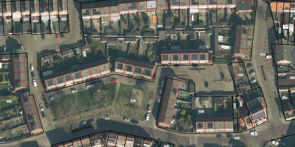 Het perceel waarop Altena 21 staat heeft een oppervlakte van 6570 m². Dit is een zeer groot perceel. De perceeloppervlakte wordt geregistreerd door het Kadaster. Gedetailleerde informatie over de maten van dit perceel kunt u vinden in het rapport Kadastrale kaart met maatvoering van Altena 21.