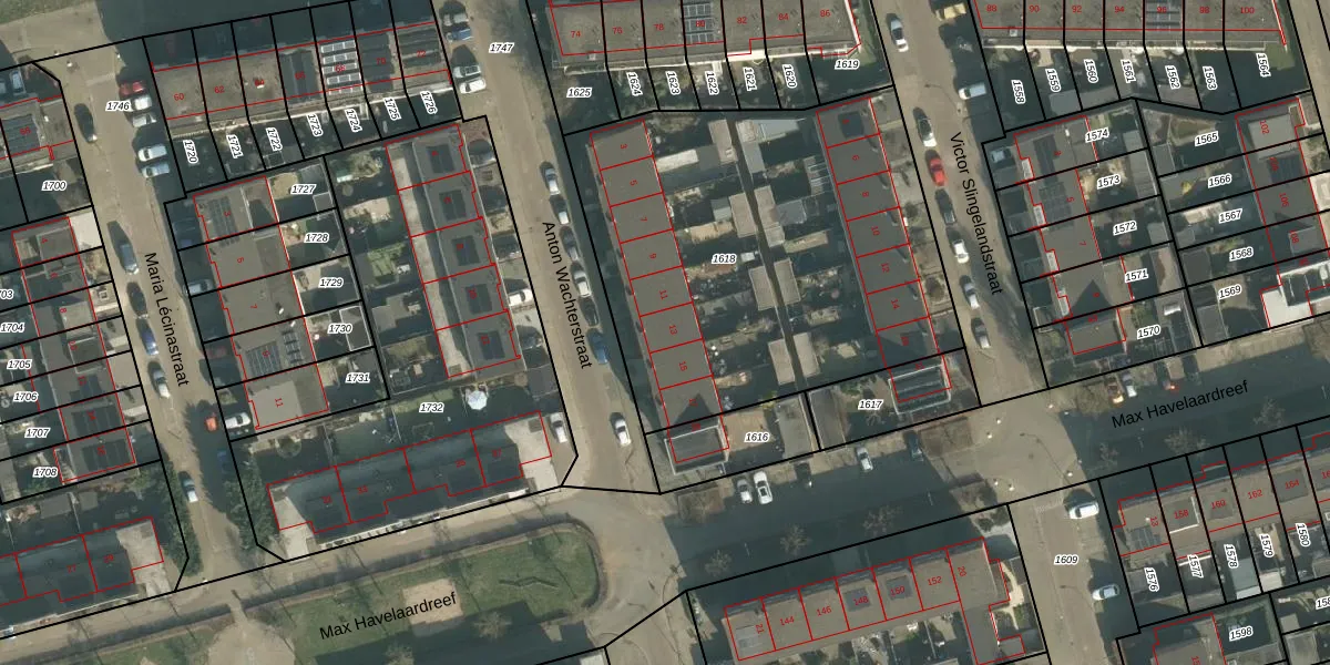 Het perceel waarop Anton Wachterstraat 13 staat heeft een oppervlakte van 2185 m². Dit is een zeer groot perceel. De perceeloppervlakte wordt geregistreerd door het Kadaster. Gedetailleerde informatie over de maten van dit perceel kunt u vinden in het rapport Kadastrale kaart met maatvoering van Anton Wachterstraat 13.
