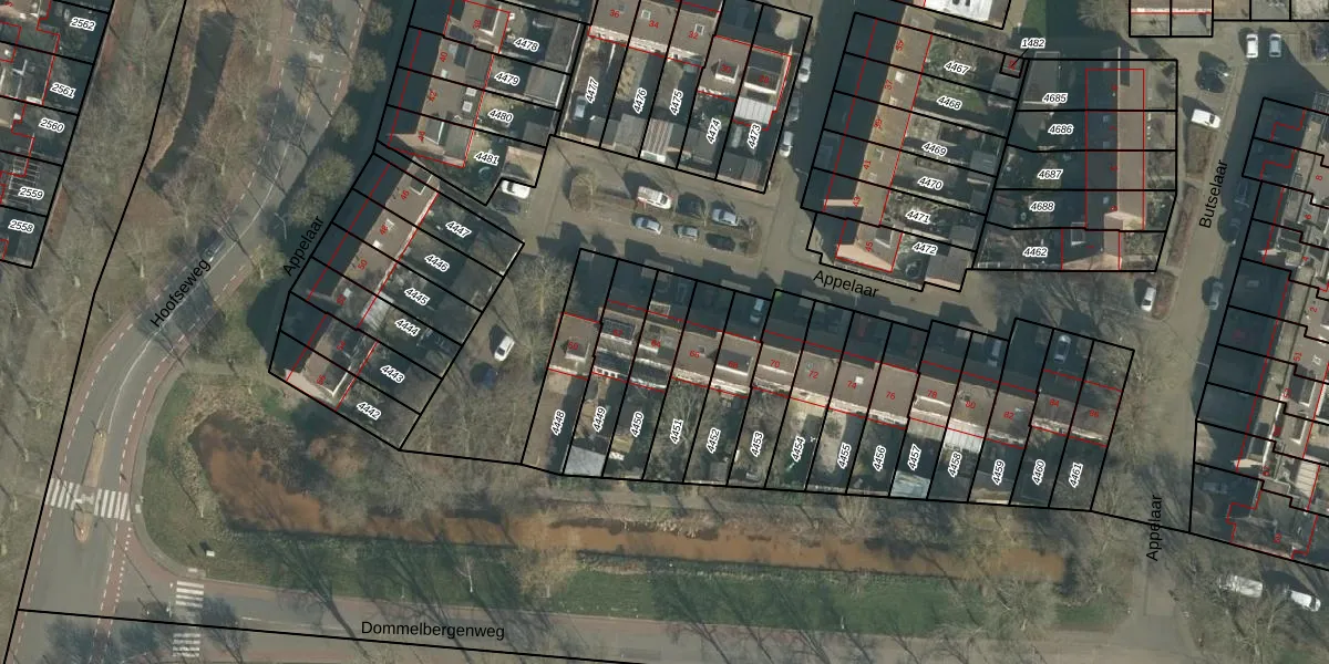 Gebruik de zoekbalk of klik op een perceel voor informatie over de adressen binnen dit perceel.