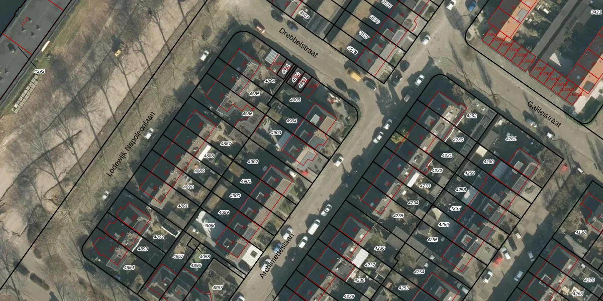 Archimedeslaan 44 is gelegen op kadastraal perceel OTH01M4903. Deze kadastrale aanduiding is uniek en wordt gebruikt door het Kadaster om eigendomsrechten en andere zakelijke rechten vast te leggen. Het perceel maakt onderdeel uit van de kadastrale gemeente Oosterhout.