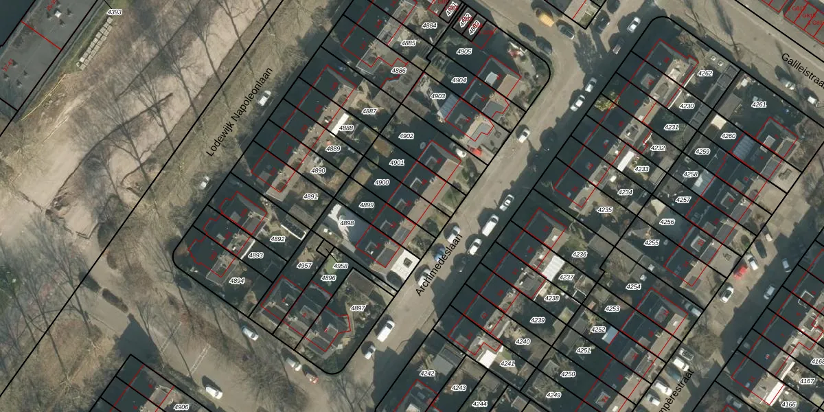 Archimedeslaan 50 is gelegen op kadastraal perceel OTH01M4900. Deze kadastrale aanduiding is uniek en wordt gebruikt door het Kadaster om eigendomsrechten en andere zakelijke rechten vast te leggen. Het perceel maakt onderdeel uit van de kadastrale gemeente Oosterhout.
