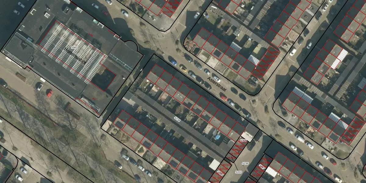 Het perceel waarop Asterstraat 14 staat heeft een oppervlakte van 3361 m². Dit is een zeer groot perceel. De perceeloppervlakte wordt geregistreerd door het Kadaster. Gedetailleerde informatie over de maten van dit perceel kunt u vinden in het rapport Kadastrale kaart met maatvoering van Asterstraat 14.