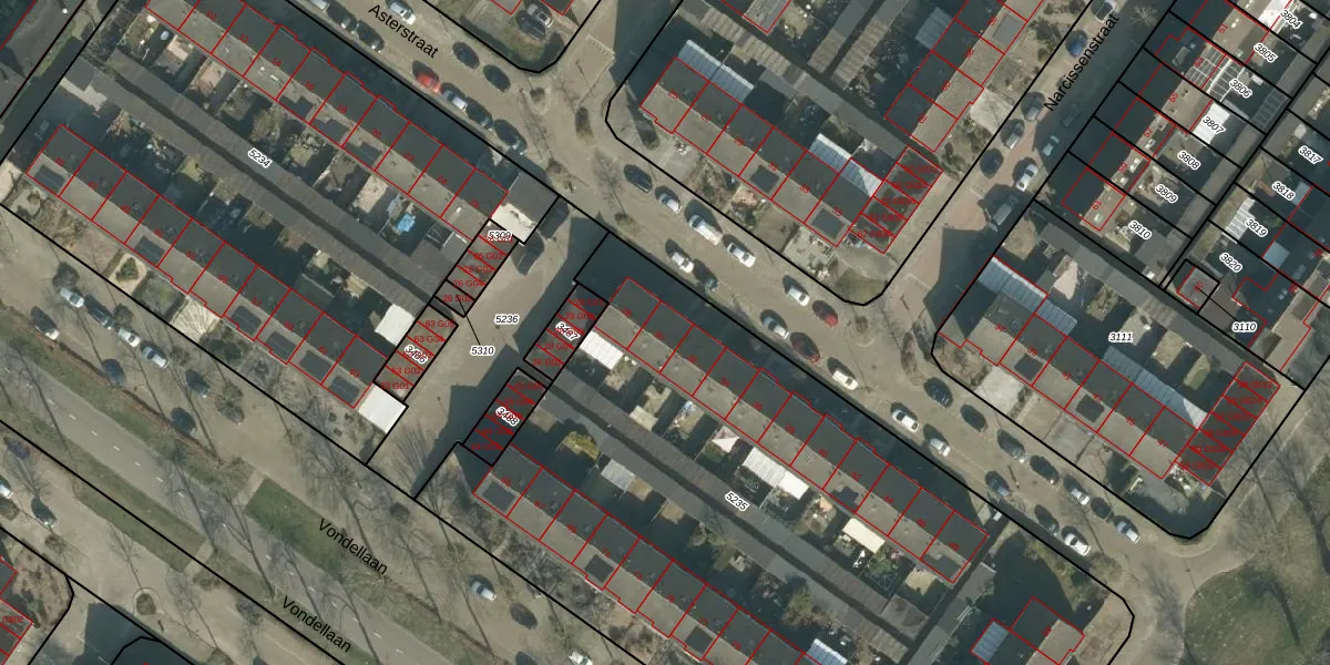 Het perceel waarop Asterstraat 30 staat heeft een oppervlakte van 4758 m². Dit is een zeer groot perceel. De perceeloppervlakte wordt geregistreerd door het Kadaster. Gedetailleerde informatie over de maten van dit perceel kunt u vinden in het rapport Kadastrale kaart met maatvoering van Asterstraat 30.