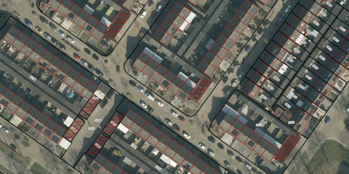 Het perceel waarop Asterstraat 33 staat heeft een oppervlakte van 5140 m². Dit is een zeer groot perceel. De perceeloppervlakte wordt geregistreerd door het Kadaster. Gedetailleerde informatie over de maten van dit perceel kunt u vinden in het rapport Kadastrale kaart met maatvoering van Asterstraat 33.