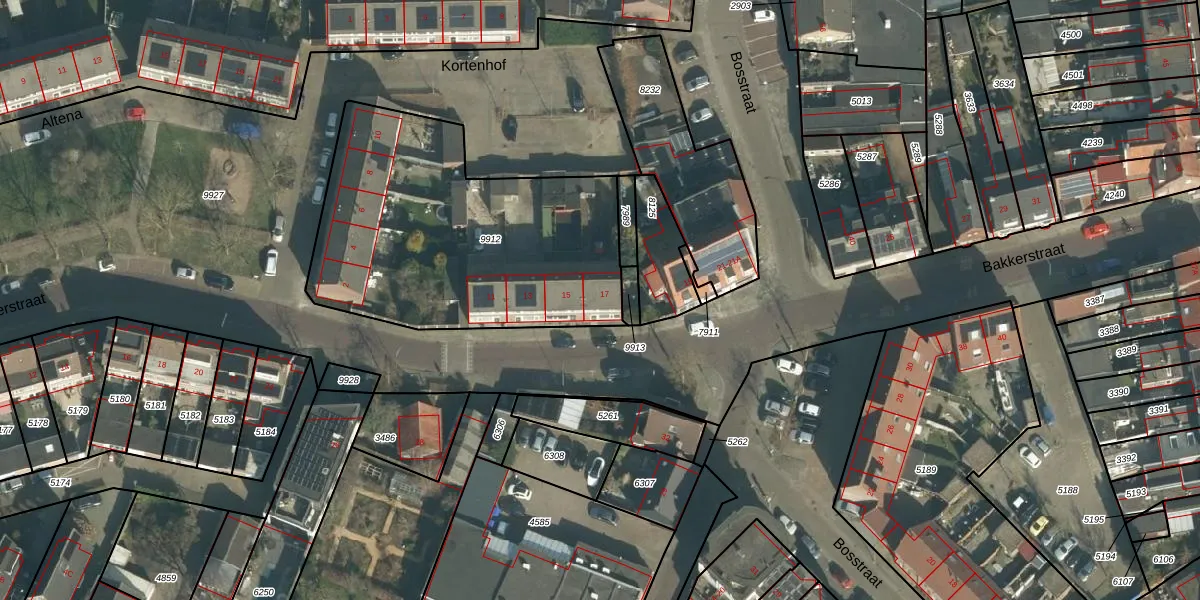 Het adres ligt op het perceel OTH01-R-9912, dat zich in de kadastrale gemeente Oosterhout bevindt. Het perceel is kleiner dan gemiddeld in Oosterhout. Het perceel is 1476 m² groot, terwijl het gemiddelde ligt op 2771,9 m². Het grootste perceel in de kadastrale gemeente is 75,9 ha. Het kleinste perceel heeft een oppervlakte van 0 m². Er zijn 9 adressen aanwezig op het perceel. In de Basisregistratie Kadaster (BRK) werden de grenzen van het perceel geregistreerd op 19-07-2022.