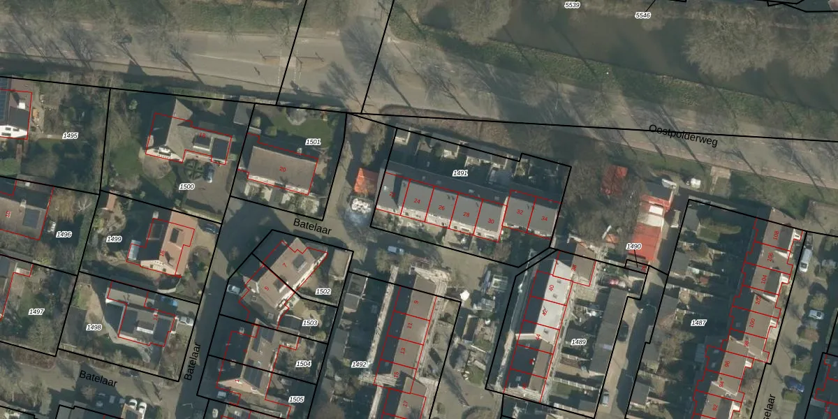 Batelaar 24 is gelegen op kadastraal perceel OTH01C1491. Deze kadastrale aanduiding is uniek en wordt gebruikt door het Kadaster om eigendomsrechten en andere zakelijke rechten vast te leggen. Het perceel maakt onderdeel uit van de kadastrale gemeente Oosterhout.