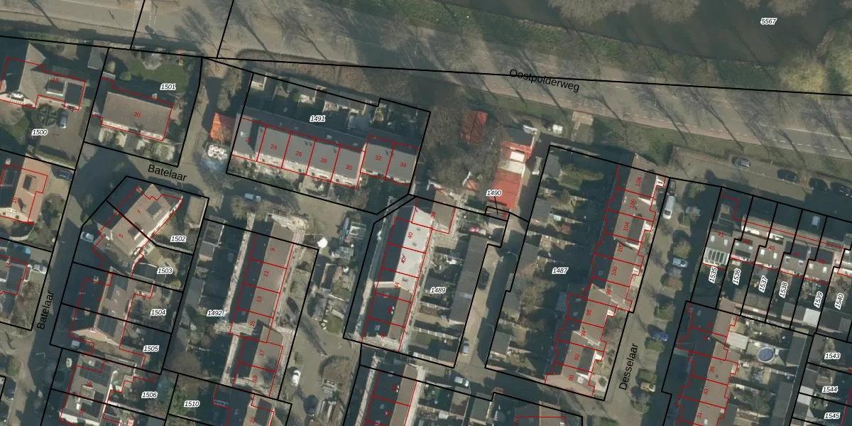 Het perceel waarop Batelaar 38 staat heeft een oppervlakte van 971 m². Dit is een groot perceel. De perceeloppervlakte wordt geregistreerd door het Kadaster. Gedetailleerde informatie over de maten van dit perceel kunt u vinden in het rapport Kadastrale kaart met maatvoering van Batelaar 38.