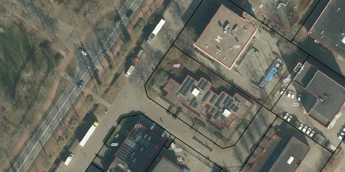 Beneluxweg 13 is gelegen op kadastraal perceel OTH01M4687. Deze kadastrale aanduiding is uniek en wordt gebruikt door het Kadaster om eigendomsrechten en andere zakelijke rechten vast te leggen. Het perceel maakt onderdeel uit van de kadastrale gemeente Oosterhout.