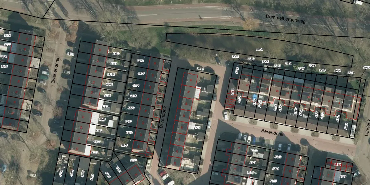 Het perceel waarop Berendonk 36 staat heeft een oppervlakte van 1168 m². Dit is een zeer groot perceel. De perceeloppervlakte wordt geregistreerd door het Kadaster. Gedetailleerde informatie over de maten van dit perceel kunt u vinden in het rapport Kadastrale kaart met maatvoering van Berendonk 36.