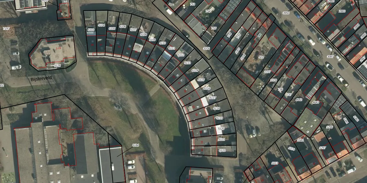 Het perceel waarop Bijsterveld 49 staat heeft een oppervlakte van 135 m². Dit is een middelgroot perceel. De perceeloppervlakte wordt geregistreerd door het Kadaster. Gedetailleerde informatie over de maten van dit perceel kunt u vinden in het rapport Kadastrale kaart met maatvoering van Bijsterveld 49.