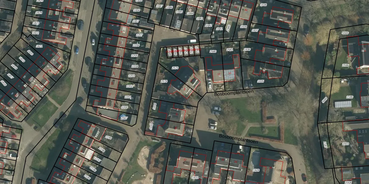 Het perceel waarop Bosboomplantsoen 16 staat heeft een oppervlakte van 341 m². Dit is een groot perceel. De perceeloppervlakte wordt geregistreerd door het Kadaster. Gedetailleerde informatie over de maten van dit perceel kunt u vinden in het rapport Kadastrale kaart met maatvoering van Bosboomplantsoen 16.