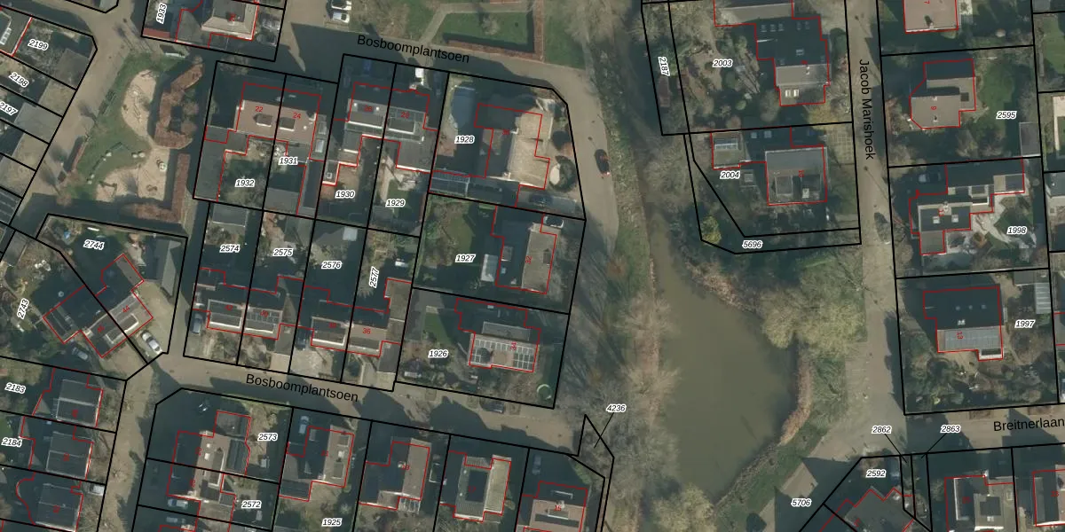 Het perceel waarop Bosboomplantsoen 32 staat heeft een oppervlakte van 541 m². Dit is een groot perceel. De perceeloppervlakte wordt geregistreerd door het Kadaster. Gedetailleerde informatie over de maten van dit perceel kunt u vinden in het rapport Kadastrale kaart met maatvoering van Bosboomplantsoen 32.