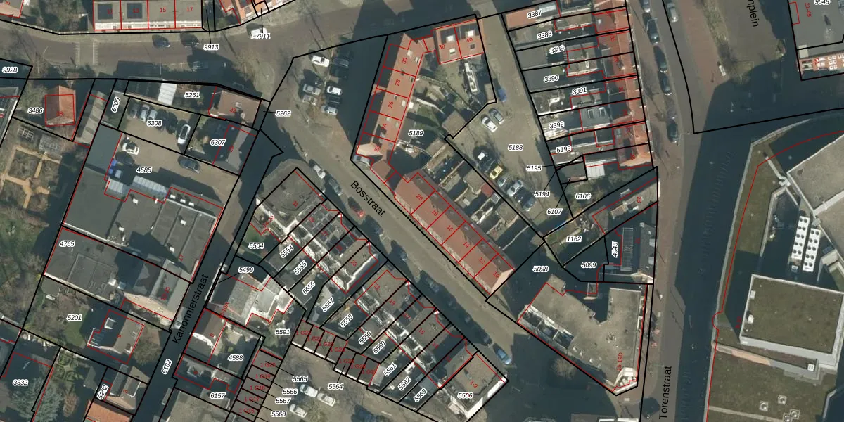 Bosstraat 18 is gelegen op kadastraal perceel OTH01S5189. Deze kadastrale aanduiding is uniek en wordt gebruikt door het Kadaster om eigendomsrechten en andere zakelijke rechten vast te leggen. Het perceel maakt onderdeel uit van de kadastrale gemeente Oosterhout.