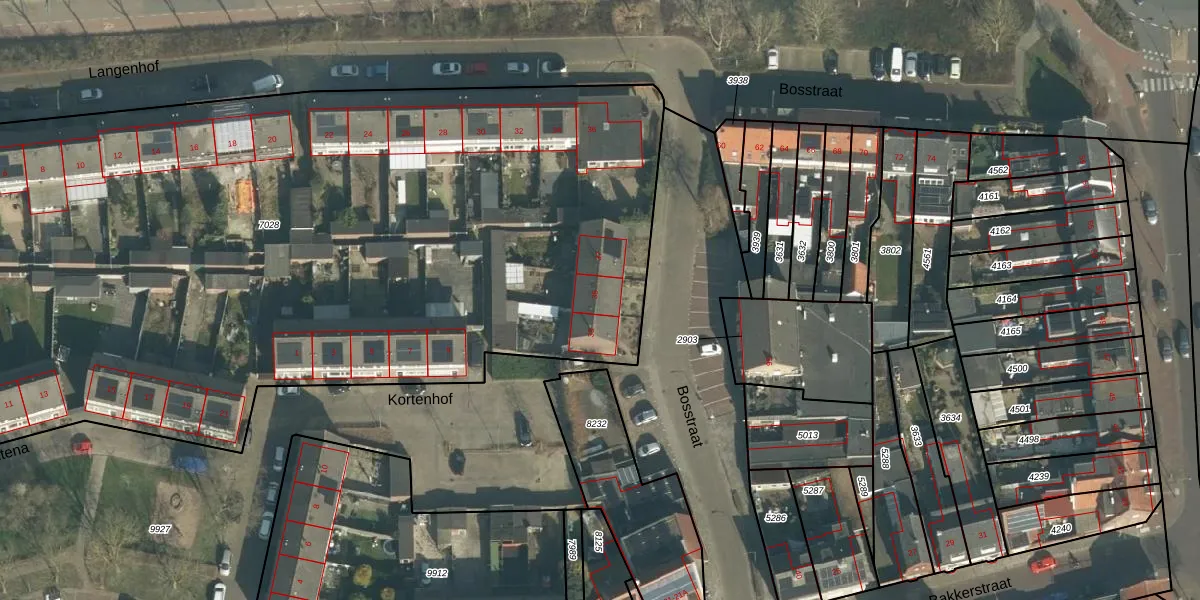 Het perceel waarop Bosstraat 35 staat heeft een oppervlakte van 6570 m². Dit is een zeer groot perceel. De perceeloppervlakte wordt geregistreerd door het Kadaster. Gedetailleerde informatie over de maten van dit perceel kunt u vinden in het rapport Kadastrale kaart met maatvoering van Bosstraat 35.