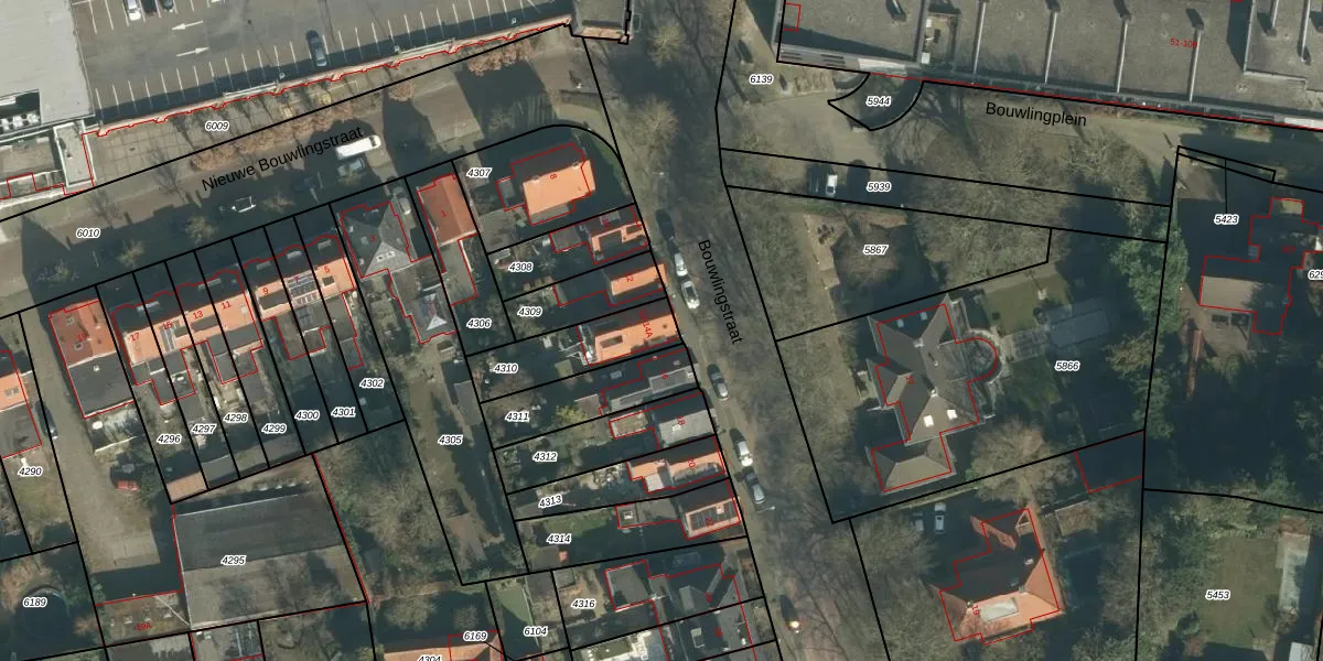 Bouwlingstraat 14 is gelegen op kadastraal perceel OTH01S4310. Deze kadastrale aanduiding is uniek en wordt gebruikt door het Kadaster om eigendomsrechten en andere zakelijke rechten vast te leggen. Het perceel maakt onderdeel uit van de kadastrale gemeente Oosterhout.